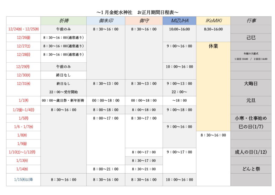 【正月案内】