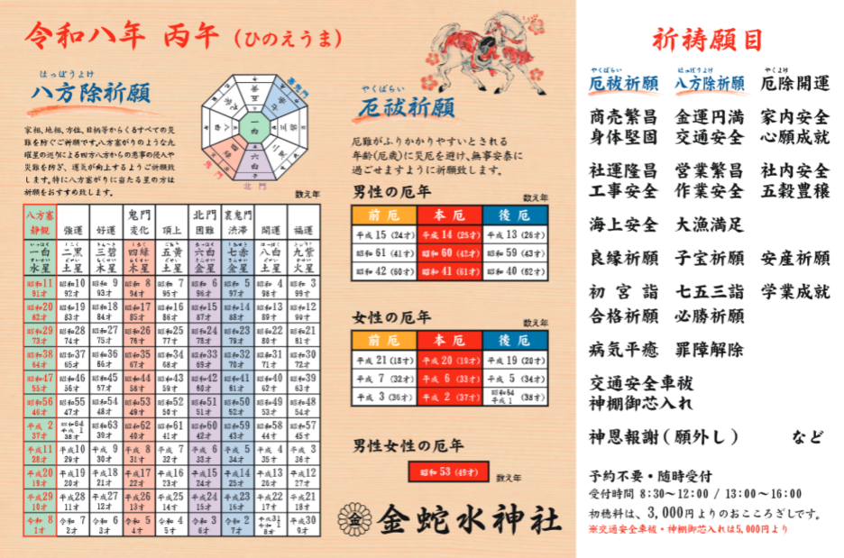 「厄年」「八方塞がり」の方は神社でご祈祷をお受けください